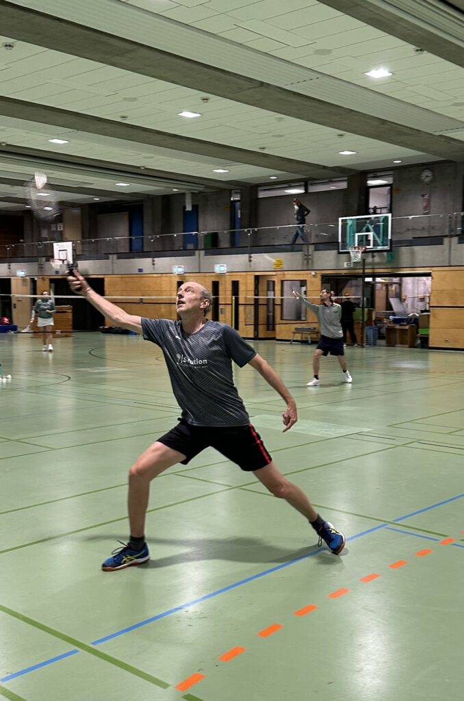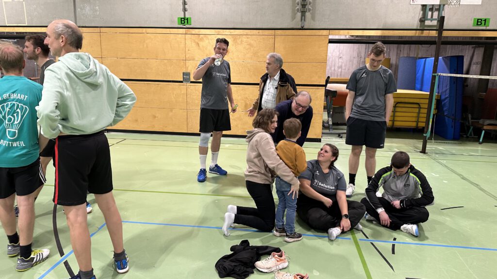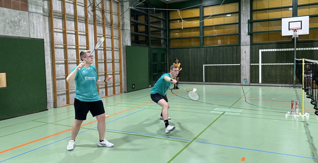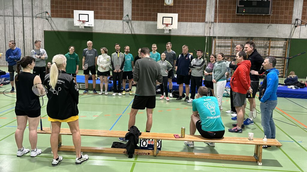 Die Besonderheit dieser beiden Spiele war, dass der langjährige 1. Vorsitzende, Michael Hupe, es sich nicht nehmen ließ, seinen Heimatbesuch so zu terminieren, dass er mit seinen Mannschaftskameraden auf dem Feld stehen konnte. Wie in alten Zeiten harmonierte er im 2. Herrendoppel hervorragend mit seinem Nachfolger im Amt, Christian Schwab. Auch im 3. Herreneinzel gegen Winzeln gelang ihm ein ungefärdeter Sieg. Im Spiel gegen Mariazell/Dunningen ließ die Kondition dann etwas nach und er musste sich letztendlich geschlagen geben (20:22, 21:15, 12:21).