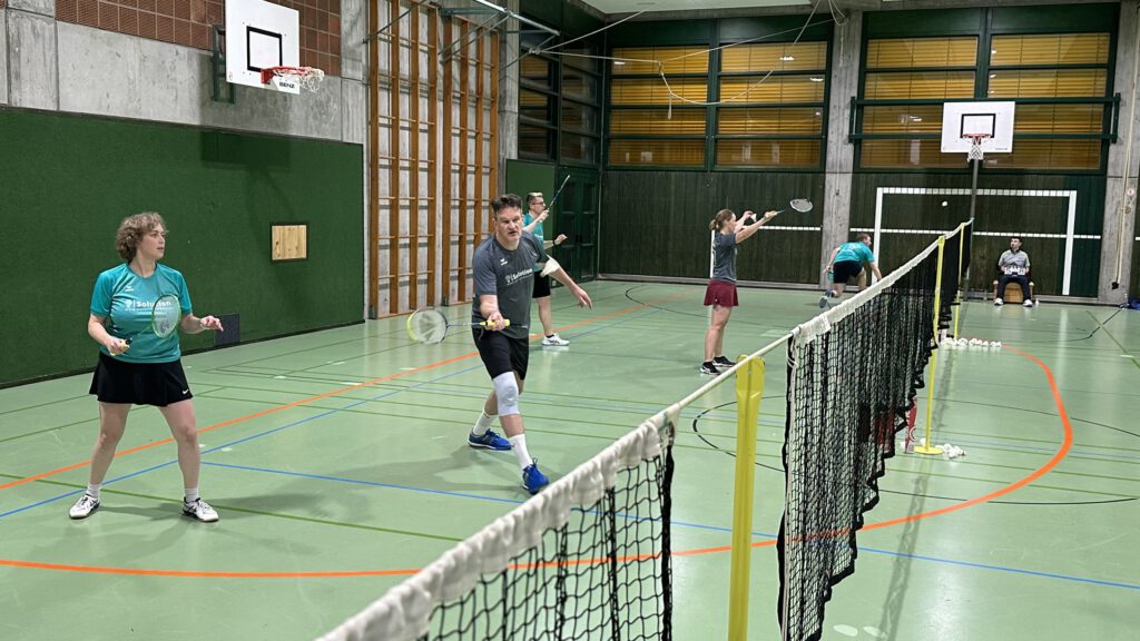 Im Abendspiel konnte Michael Haug verstärkend eingreifen. Er gewann das 1. Herrendoppel mit Christian Mohm nach einem starken Fight in drei Sätzen (13:21, 22:20, 21:17). Auch das 2. Herrendoppel Jürgen Strauss/Niko Gebhart konnte nach einem sehr spannenden 1. Satz punkten (27:25, 21:15). Im 1. Herreneinzel brachte Michael Haug seinen Gegner schier zur Verzweiflung, weil er viele gut platzierte Bälle erlief und im Spiel hielt. Ein 2-Satz-Sieg (21:12,21:17) war der Lohn, den Christian Mohm/Anika Bauer im Mixed sich ebenso erarbeiteten (21:18, 21:17). Das Damendoppel Michelle Berwanger/Anika Bauer hatte den Siegpunkt in Sichtweite, konnte ihn im 3. Satz aber leider nicht festhalten (21:18, 14:21, 18:21).